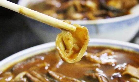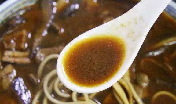 浓油赤酱的面汤稠不见底,味道中微微带点辣,一口喝下去有种直抵胃部的酣畅淋漓。小资君在这里要提醒一下大家,老爷叔不喜欢别人浪费,所以来吃面的人最好全部吃光,能吃多少点多少。