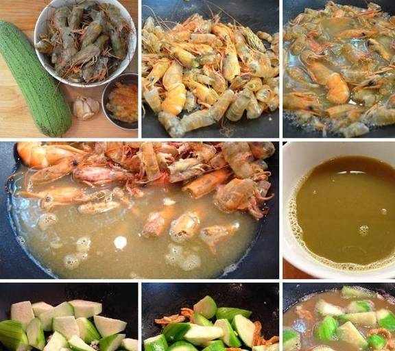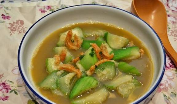 熬好的虾汤加入水瓜和虾米煮,就成了一道非常鲜甜美味的晚餐菜。