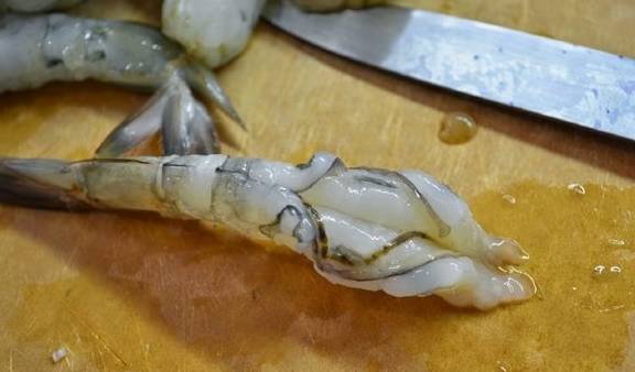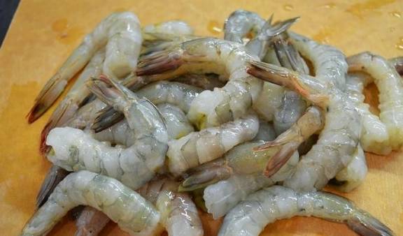 Step1.将虾剥去虾头和中段的壳,保留尾巴。