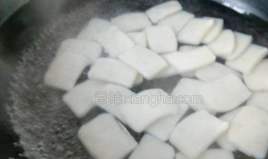 2.水开,倒入年糕稍微煮一下