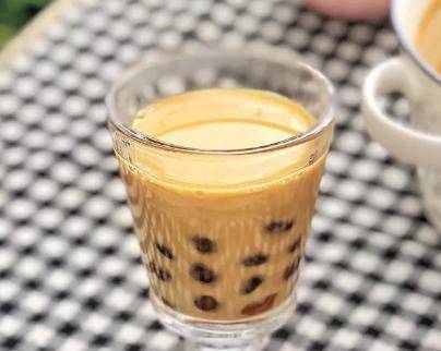 3、先杯中放入些许的珍珠,加上已经煮好的奶茶,这样一杯可口的奶茶就制作好了。