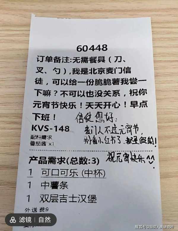 那有的网友看到就眼馋了,于是也有样学样去留了一个备注给麦当劳。