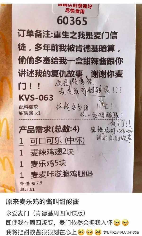 却因为把“甜酸酱”写错成“甜辣酱”,被麦当劳一眼识破是假的麦门信徒。