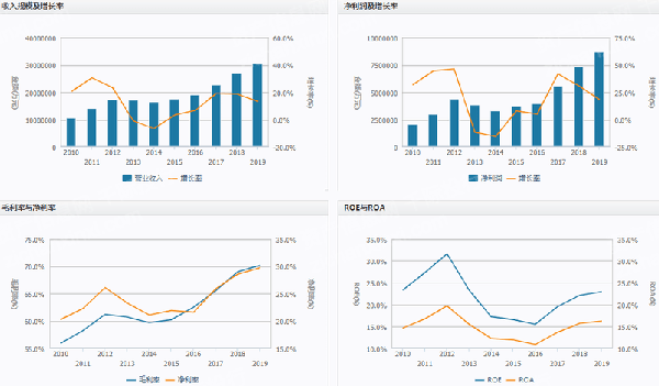 白酒行业属于快速发展阶段,根据其行业的收入规模的增速。收入规模增速可达百分之15左右。是中国GDP的速率的两倍多。此外,毛利率和净利润连年攀升。在2019年达到30%。