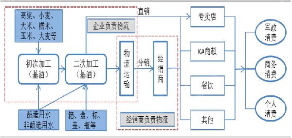 中游产业主要就是制酒,包括制曲、基酒和成品酒。包装这块,一般制酒企业都会将包装业务交给专门的包装公司负责,然后再收回包装好的成品酒。