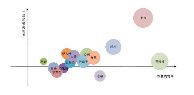 由于存货周转率和一级经销商利差的优势,茅台成为白酒行业当中最具有核心竞争力的公司。跟随其后的是凭借出色的存货周转率的五粮液。