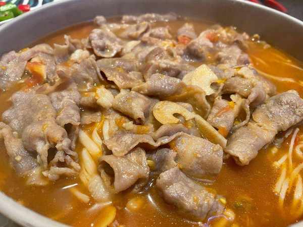 主材:牛肉0.5斤、西红柿2个、金针菇、黄辣酱