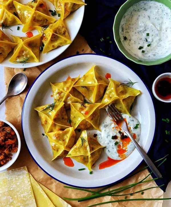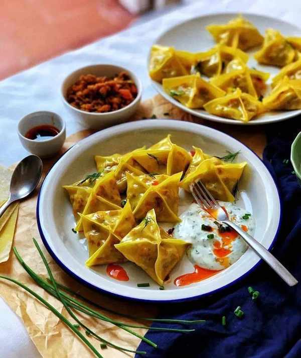 据说尼泊尔的饺子是受了藏人的影响。尼泊尔人为饺子调了各种酱汁,其中包括咖喱汁,浇在饺子上一起吃。
