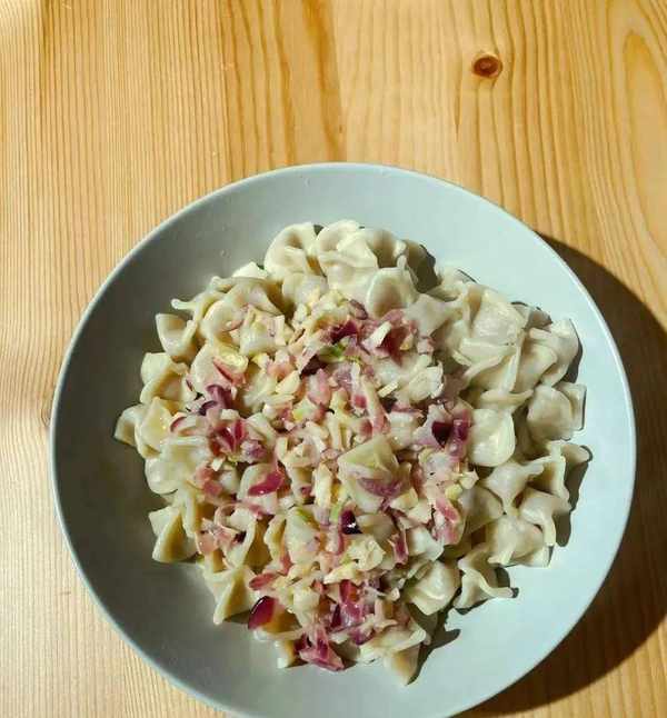 俄国饺子呈扁圆形,乍看之下,仿佛像一个贝壳。饺子面团由面粉、鸡蛋和水制成。经典馄饨的馅料由牛肉、猪肉或羊肉制成,加入各种香料,通常它们配有蔬菜,并与醋、胡椒、芥末或辣根一起食用。
