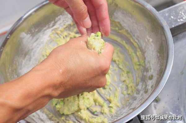 面粉要根据青豆的多少,少量多次的加入,调成比较粘稠的面糊,太稠丸子吃起来口感会硬,过稀团不成丸子。
