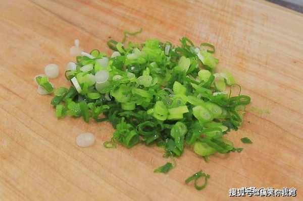 小葱一根,切成葱花,和青豆放在一起。