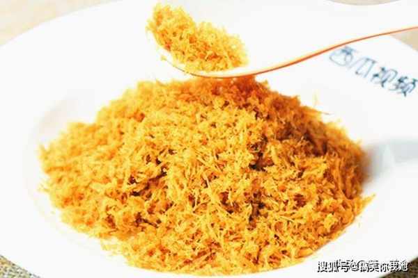 下面,我们开始炒肉松:把锅烧热,倒入肉丝翻炒几下,调好的碗料均匀淋在肉丝上面,开最小火不停的用筷子翻拌、炒出肉丝中的水分,如果觉得温度太高的话,可以离火翻炒不要炒糊。肉松会慢慢变干,变得非常蓬松,最终炒成金黄的就可以了,如果喜欢吃蓬松一些的,可以放入料理机中打成绒状,也可以拌点黑芝麻或者海苔,放在保鲜盒里随时享用。