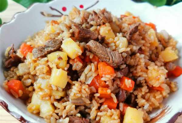【羊肉饭】所需材料:米饭适量,羊肉半块,土豆1个,胡萝卜半根,洋葱半个,油盐适量,孜然粉1茶匙,姜2片,料酒半汤匙,生抽半汤匙,生抽2汤匙,白胡椒粉1茶匙,孜然粉1茶匙,