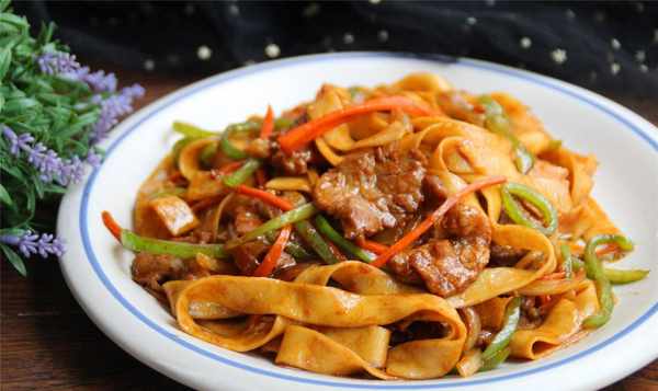 【炒牛肉】材料:半个猫切面、100克牛肉、半个洋葱、1个胡椒粉、半个胡萝卜、适量的油和盐、1茶匙白胡椒粉、1茶匙孜然粉、半汤匙料酒、鸡精1茶匙,生抽2汤匙,炸酱油半汤匙,淀粉适量,