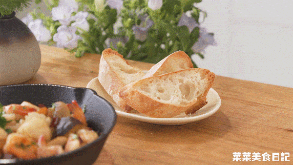 配上一盘法式长棍面包,蘸上大蒜油,香浓又饱腹。