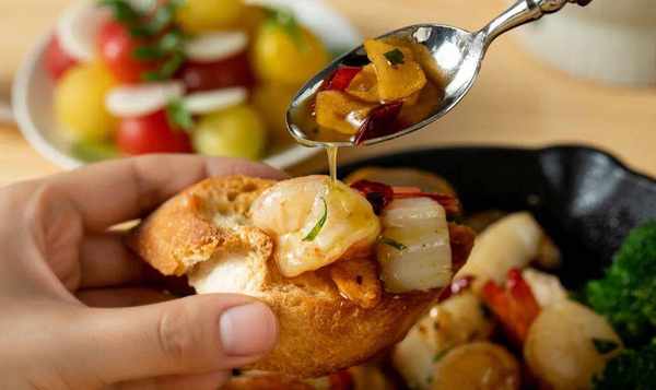 西班牙人通常使用Ajillo来制作虾。我吃的居酒屋把虾换成了日本特产扇贝,也就是虾夷扇贝。