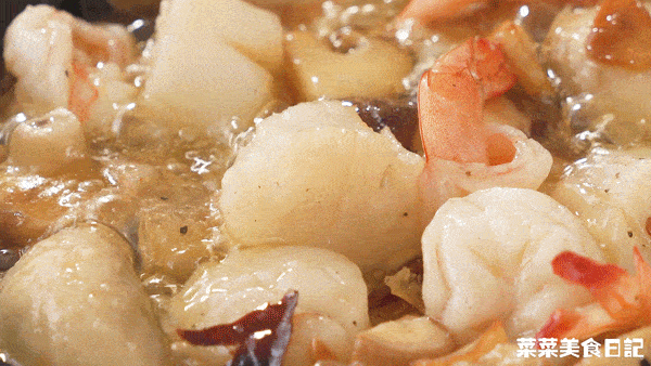 5.加入香菇/香菇、干贝/虾,撒上1/2茶匙盐和1/2茶匙黑胡椒调味,煮约3-5分钟