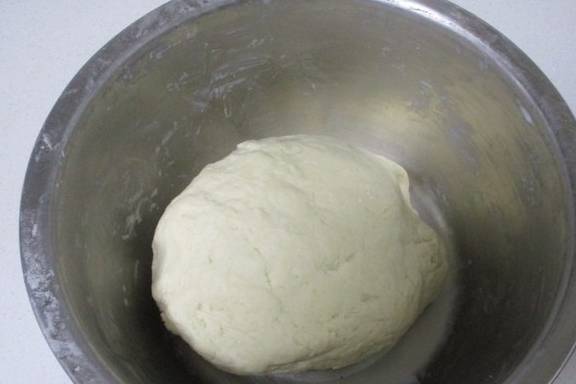 再把牛奶倒入面粉里揉成关滑的面团