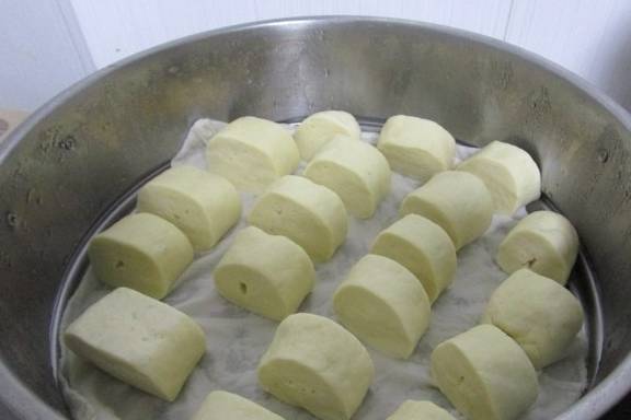 放入垫上蒸布的蒸笼内,每一个都要留有空隙,盖上静置20分钟