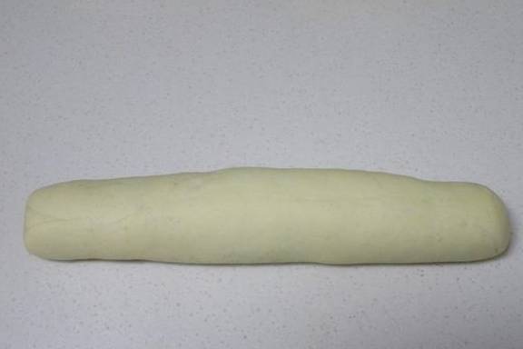 之后揉搓成均匀的长条,用刀切成均匀面团