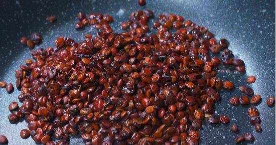 把酸枣仁倒入锅中,小火炒干水分,酸枣仁含有丰富的维生素c和多种营养元素。可补充人体所需的营养物质,全程小火炒制,千万不要炒焦了。