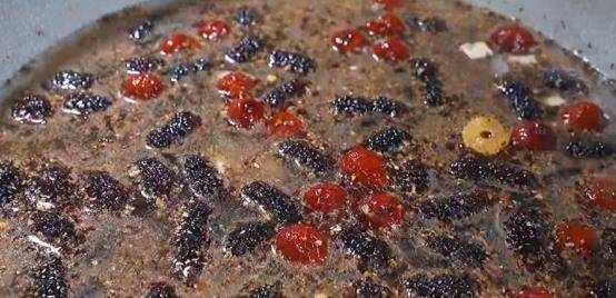 煮至汤汁逐渐浓稠,用勺子捞起扔掉。关掉暖气,让它冷却到70度左右。倒入水玻璃瓶中,无油,密封保存