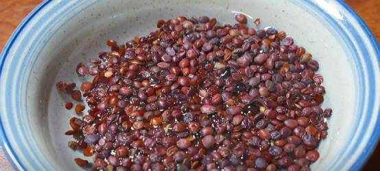 首先准备适量的酸枣仁放入大碗中,加入清水,清洗干净。洗好的酸枣仁倒入滤网中沥干水分。
