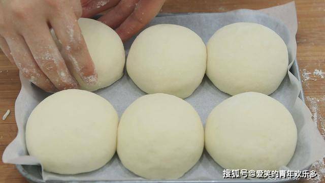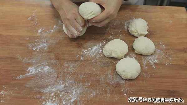 用手揉成圆面坯,搓揉好的6个面坯 ,大小外形要一个模样。
