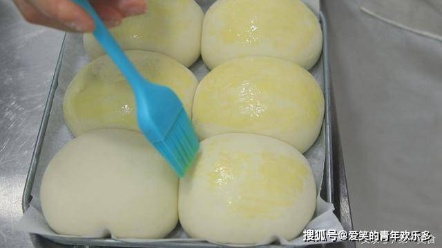 在顶部用刷子刷上一层薄薄的鸡蛋黄,烤出来的面包颜色会金黄。