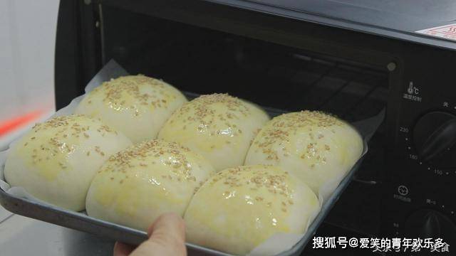 1个小时以后把二次发酵好的面包从烤箱中取出来。
