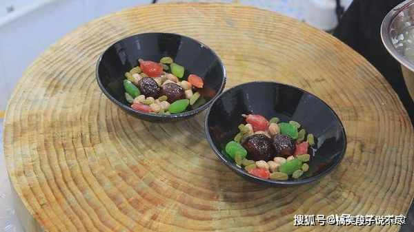 花生米20克,葡萄干20克,瓜子梅(红青)30克,大个蜜枣4个。