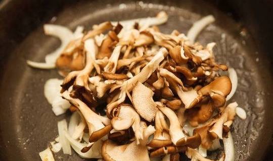 1.先将舞菇下锅干炒后菇类的香气可以释放的比较完整。