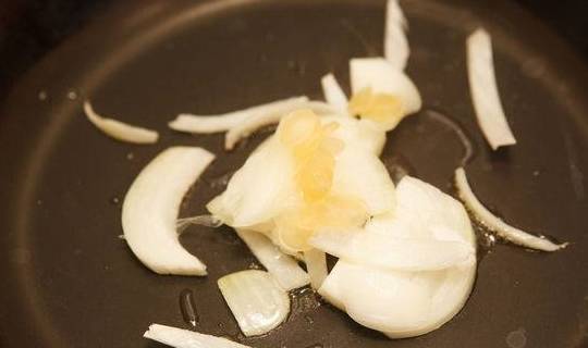 Step1.起油锅,先将大蒜与洋葱下锅爆香。