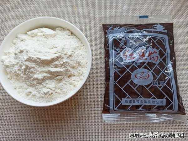 1、今天做的是红豆馅,准备300克小麦高筋面粉,100克红豆馅。
