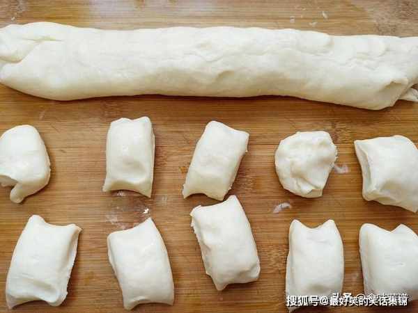 3、揉成没有硬结的面团,在案板上搓成长条,平均分成4-5厘米长的剂子。