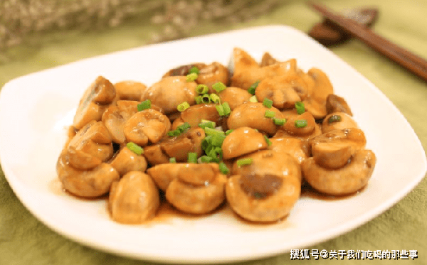 2、加入一勺白糖、一勺生抽、半勺老抽,翻炒至口蘑变软出汁,开大火收汁,淋入水淀粉勾芡,撒上葱花即可出锅。