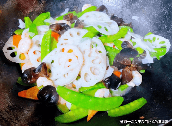 1、荷兰豆撕掉老筋洗干净,莲藕、胡萝卜去皮洗净,切成薄片,木耳泡发洗干净,烧一锅开水,放入藕片、木耳、胡萝卜煮1分钟,捞出过凉水,沥干水分。
