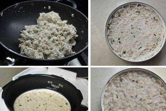 、中间要用铲子不断翻炒至米浆变色1、然后倒入刷油的模具中,压实