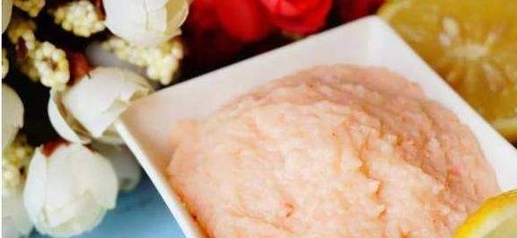 做法:①将虾肉放入加有少许水的锅里煮5分钟后取出,剁成细末。②将虾肉放入榨计机中搅成泥状。③在虾泥中加盐和调料可以烹饪后直接食用,也可以放在粥里或者加蔬菜泥一起食用。
