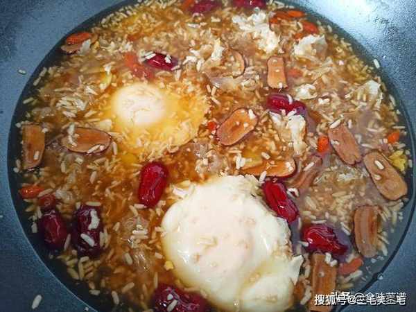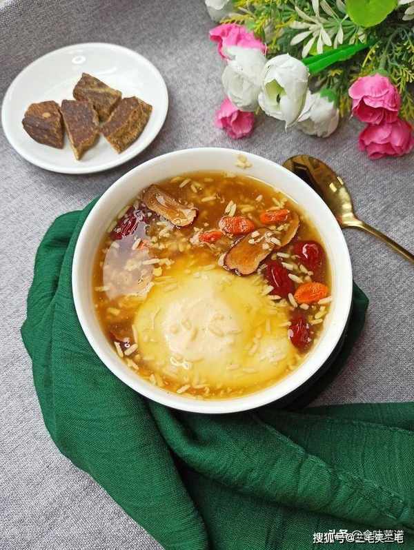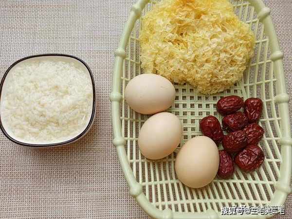 食材:老红糖20克,酒酿100毫升,鸡蛋3个,枸杞10克,红枣、银耳适量