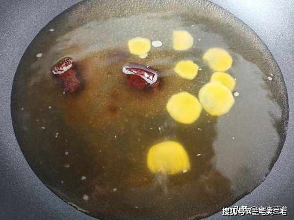 第三步:锅中加入适量清水,大火烧开后,先放入姜片,再放入老红糖煮至融化,可用勺子多搅拌,加速红糖融化。