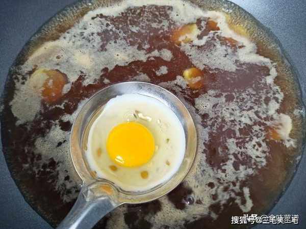第四步:打入鸡蛋,分享一个小窍门,可让鸡蛋百分百成型,先把鸡蛋打到勺子里,放入锅中心,沸水烫1分钟左右,然后倒入锅中。