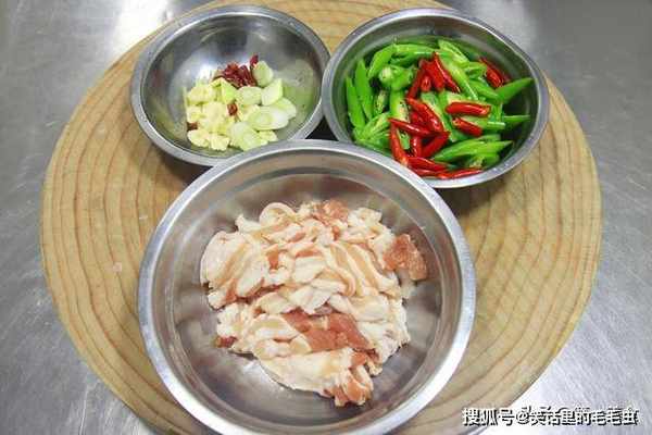 准备食材:五花肉1块、线椒3根、小米辣3个、葱姜蒜适量