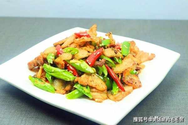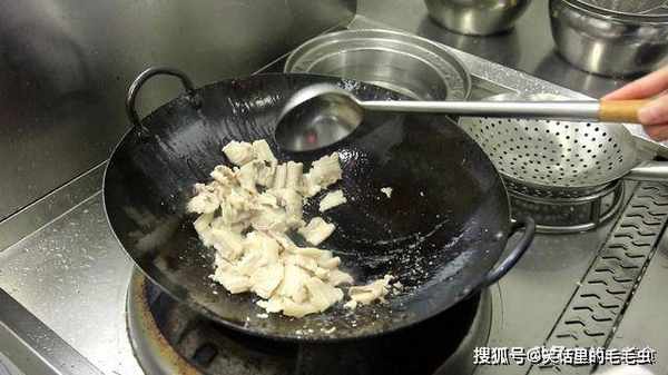 4.锅内烧油,热油充分滑锅后倒出,倒入凉油,热锅凉油肉片不会粘锅,倒入肉片小火慢煎,煸炒出油,肉片肥肉变成透明,析出肥油,注意温度不要太高,免得出油过多。