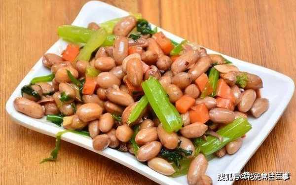 接着把芹菜、胡萝卜切成段状和小块,焯水捞出,最后和花生放在一起,按个人喜好调汁搅拌,装盘即食。