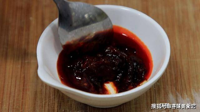 倒入黄豆酱5克、辣椒酱5克、辣椒红油5克