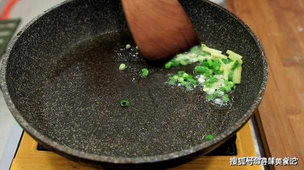 4.锅内烧一点热油,把姜末葱花炸一下,把炸好的葱油倒入搅拌好的酱料中,然后把酱加热一下倒出。