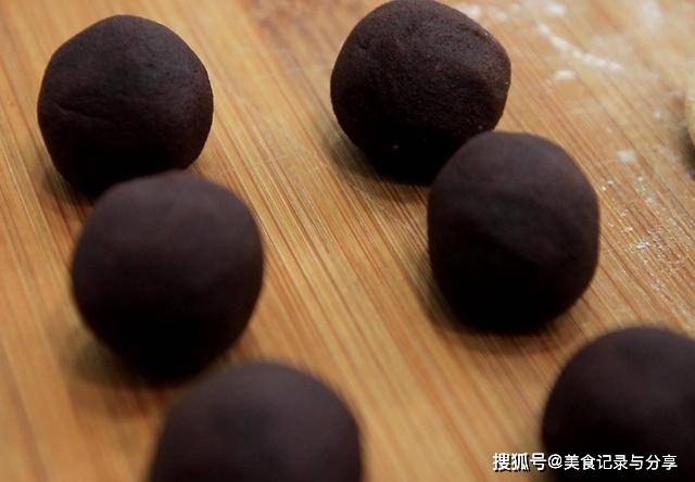 3.把豆沙在克秤上面秤一下,每个豆沙都团成15克左右的圆球,用手把所有的豆沙团好。