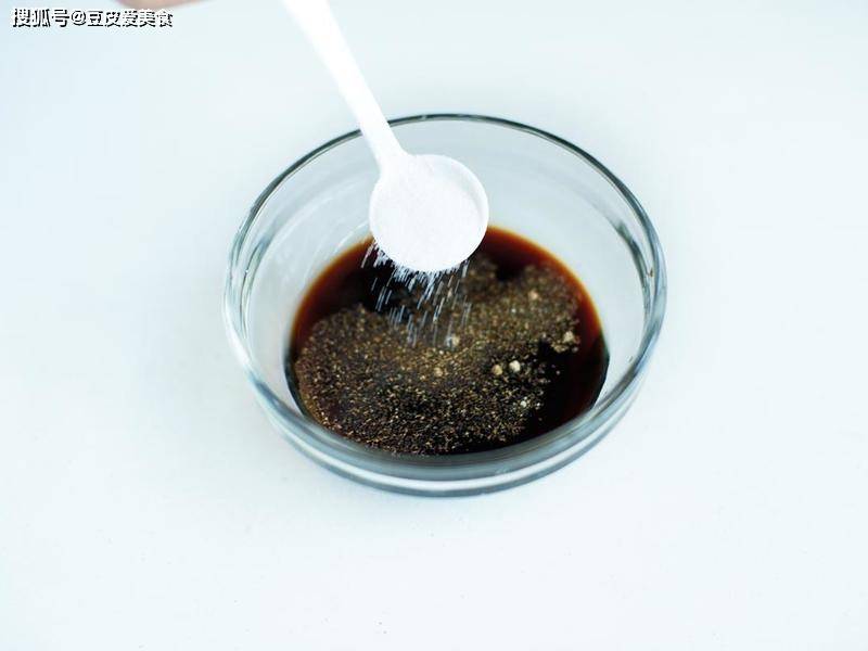 2、调碗汁:料酒、生抽、盐、糖和花椒粉搅拌均匀,调成料汁。