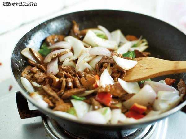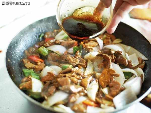 5、淋入调好的料汁,迅速翻炒均匀,关火。再滴入几滴香油,就可以了。香油不能多,不然味道就差了。